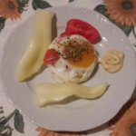 A hűtőben volt 6 db friss tojás, egy kis párizsidarab, néhány deka maradék sajt, 2 paradicsom, 2 paprika.