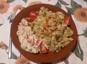 Brassói aprópecsenye padlizsánnal gazdagítva és majonézes padlizsánsaláta (kép forrása: saját fotó)