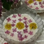 Bármilyen ehető virággal elkészithető ez a finomság. Én most orgonát és pitypangot használtam- ezzel a virágkombinációval például illik az asztalra Anyák Napján is 🙂