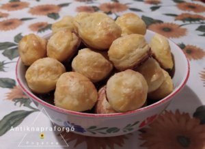 A margarint, túrót, lisztet, sütőport, sót egy tálban jól összegyúrjuk, majd fél órát pihentetjük szobahőmérsékleten.